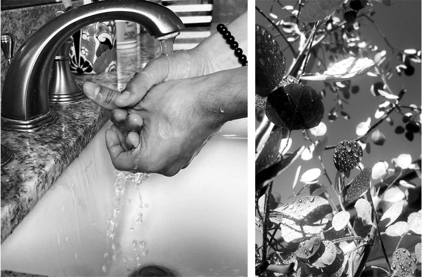 Honorable Mention, Black and White category: (L) Esteban Robledo, 12th Grade, Hilltop High School, “Handwashing Against The Virus;” (R) Janet Mendoza, 11th Grade, Hilltop High School, “Backyard Beauty.” Photos: Courtesy Sweetwater Authority