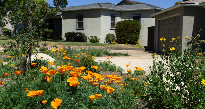 Even though this new WaterSmart Living landscape is only four months old, it is already in full bloom with California native plants. Photo: Helix Water District